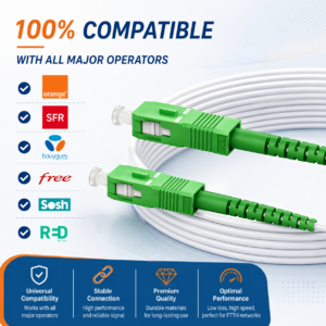 Câble à Fibre Optique SC/APC à SC/UPC OS2 Simplex Blanche (Freebox)(Ref:345)