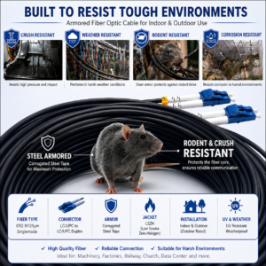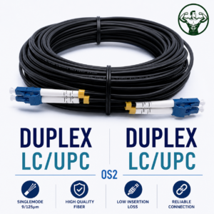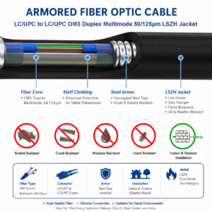 Câble à Fibre Optique en Acier Blindé pour Extérieur et Intérieur LC/UPC à LC/UPC Multimode Duplex OM3 Noir (Ref:4511)