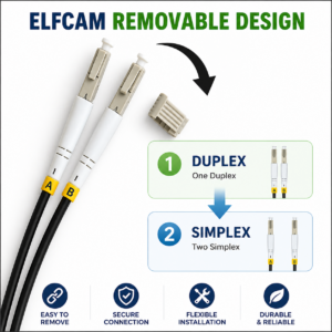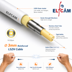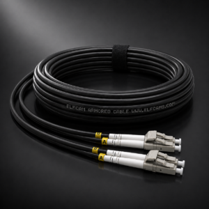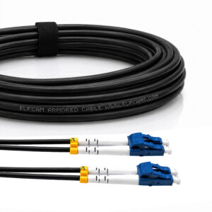 Elfcam® – Câble à Fibre Optique en Acier Blindé pour Extérieur et Intérieur LC/UPC à LC/UPC OS2 Duplex Monomode 9/125μm LSZH,Noir (Ref:5221)
