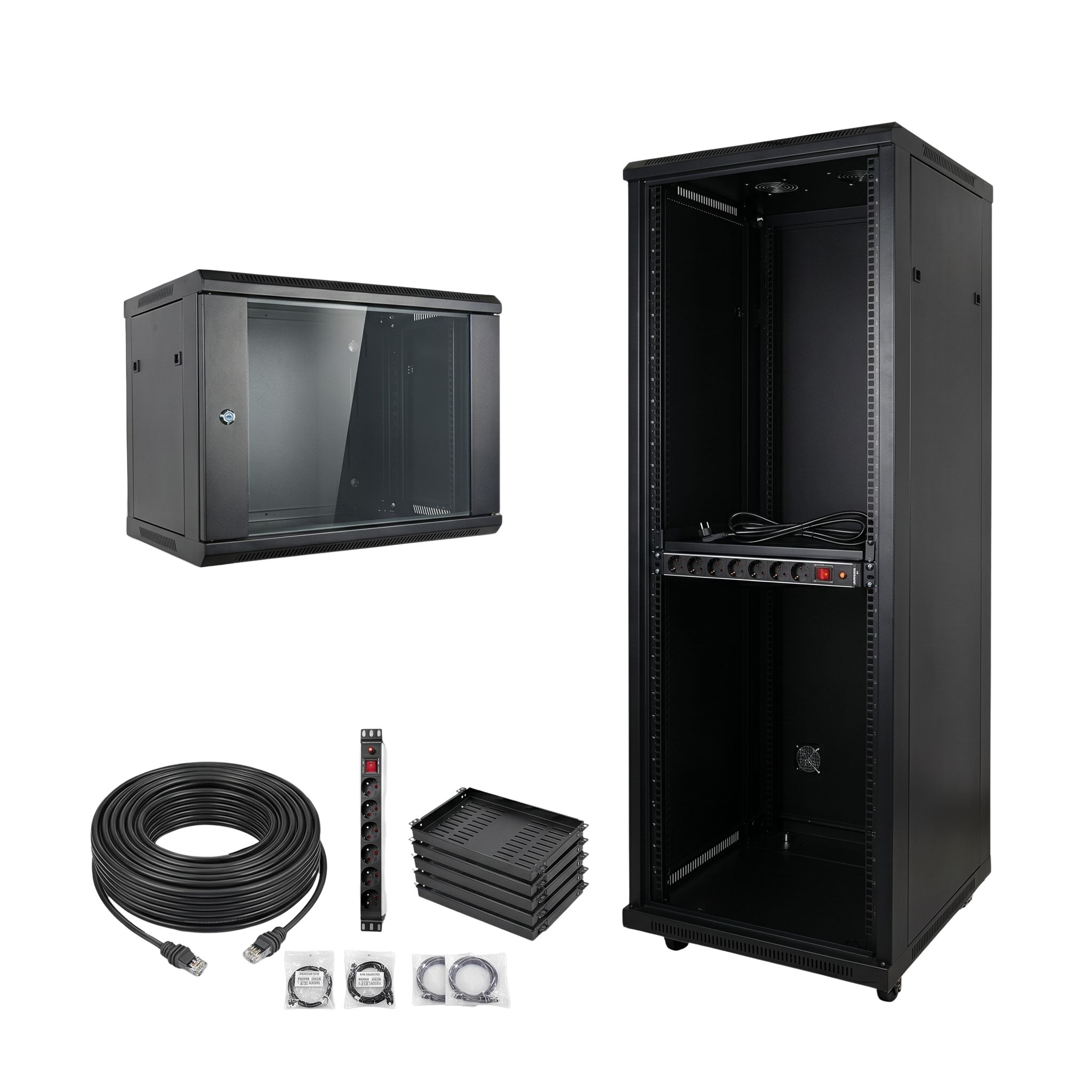 Armoire réseau 9U 19″ mural avec porte vitrée trempée, pour Rack Serveur et Équipement Réseau – 5mm Porte Verre Trempé, Capacité 100kg, Certification CE RoHS, Noir