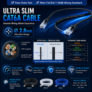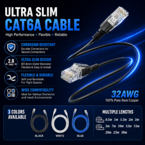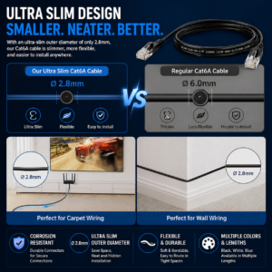 Câble Ethernet Cat 6A, Ultra Slim 10Gbps 32AWG UTP OD 2,8mm 500MHz, 10Gb Thin RJ45 Cat6a Patch Cord pour Data Center (Lot1)