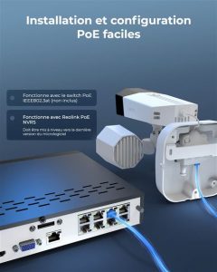 - Il alimente aussi des caméras de surveillance IP pour assurer la sécurité, avec les données de surveillance envoyées sur le réseau via PoE.