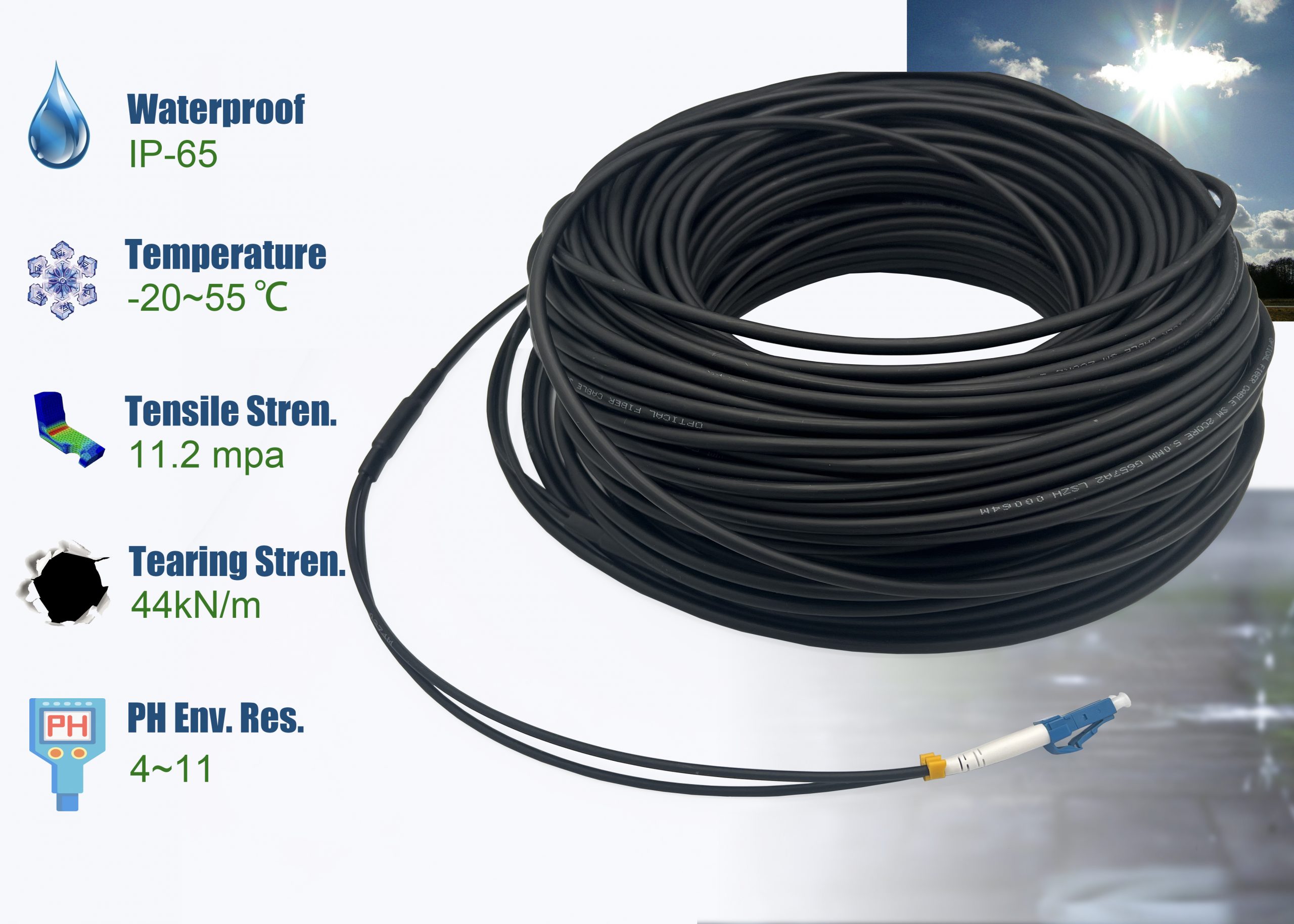 Cordon Fibre Optique pour Extérieur LC/UPC vers LC/UPC OS2 Duplex Monomode Diamètre 5.0mm