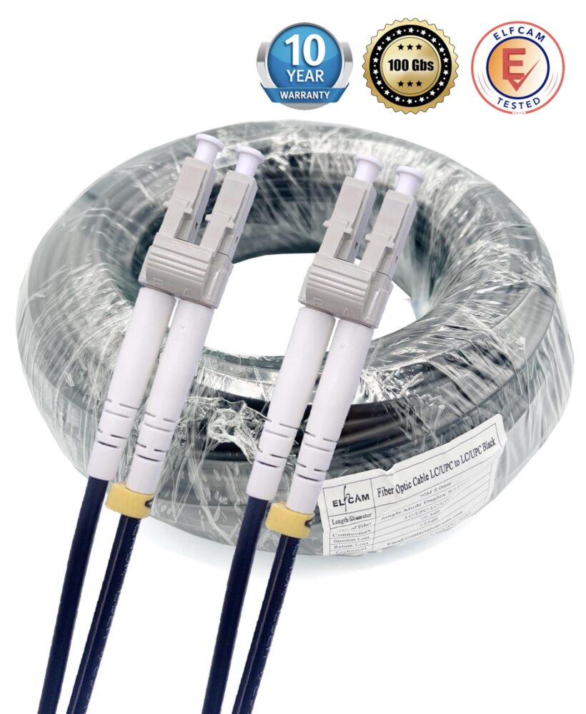 Elfcam® – Câble à Fibre Optique LC/UPC vers LC/UPC OM3 Duplex Multimode 50/125um G657A2 pour Extérieur et Intérieur