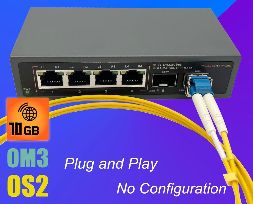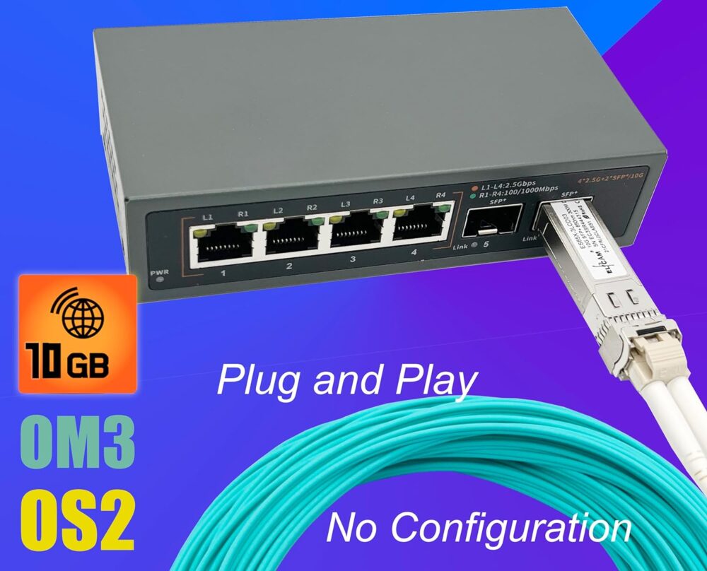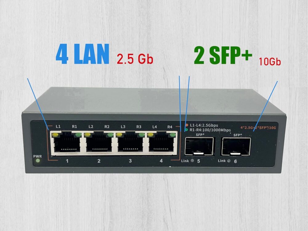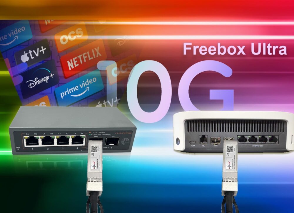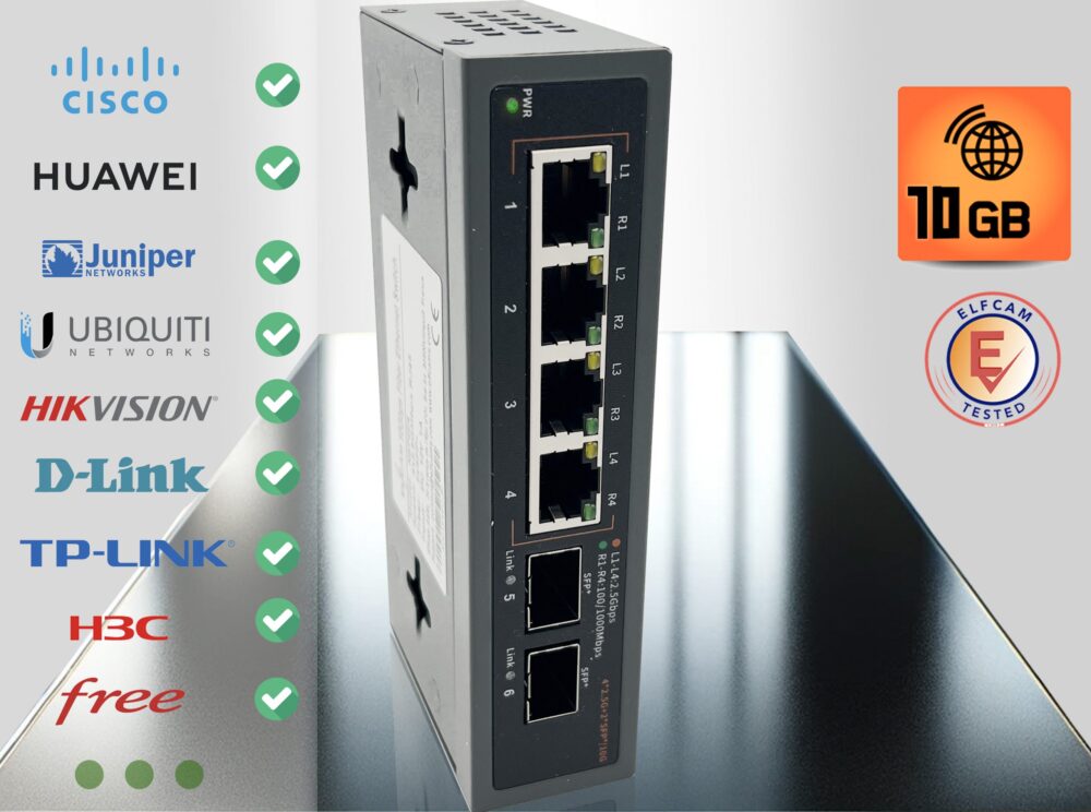 Le switch fibre optique 10GbE est spécialement conçu pour répondre aux besoins de performance réseau élevés, offrant des débits rapides et fiables pour les utilisateurs de la Freebox Ultra. Avec ses 2 ports 10Gb SFP+ et 4 ports 2,5GbE RJ45, il permet des transferts de données ultra-rapides pour une expérience utilisateur fluide et sans interruption.