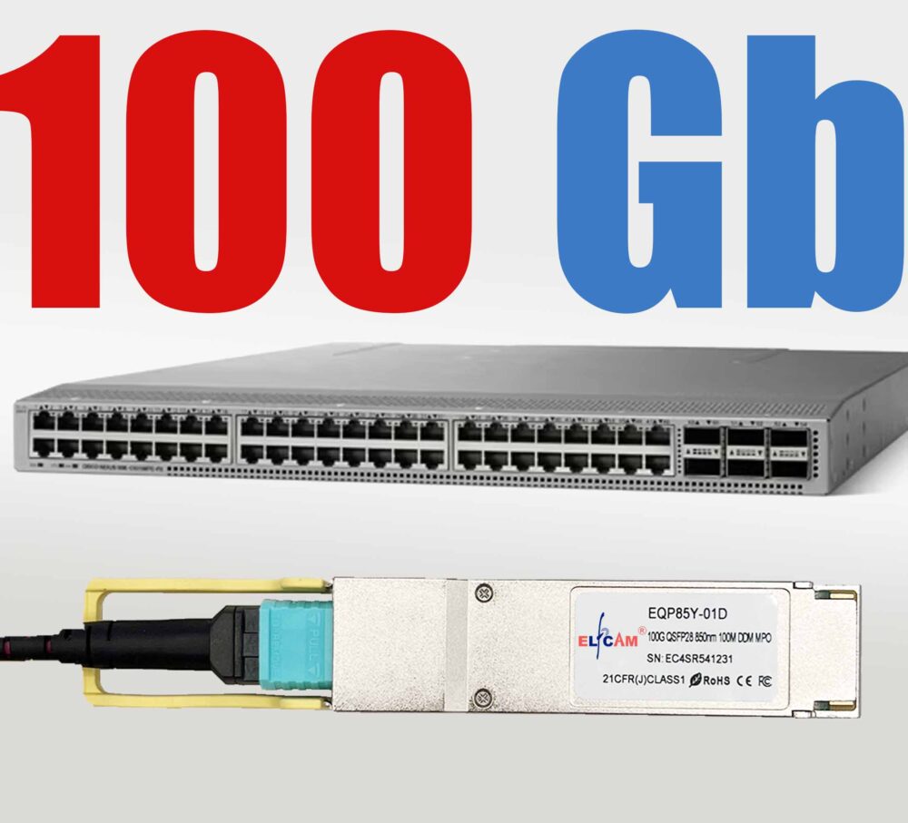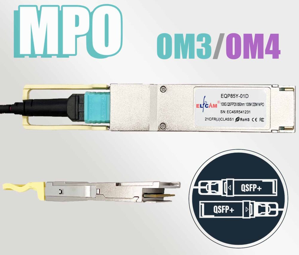 - Le module émetteur-récepteur optique QSFP-100G-SR4 compatible QSFP28 est conçu pour un débit Ethernet 100GBASE jusqu’à 100m sur une fibre multimode OM4 (MMF) utilisant une longueur d’onde de 850nm via un connecteur MTP/MPO-12. Lot de 1