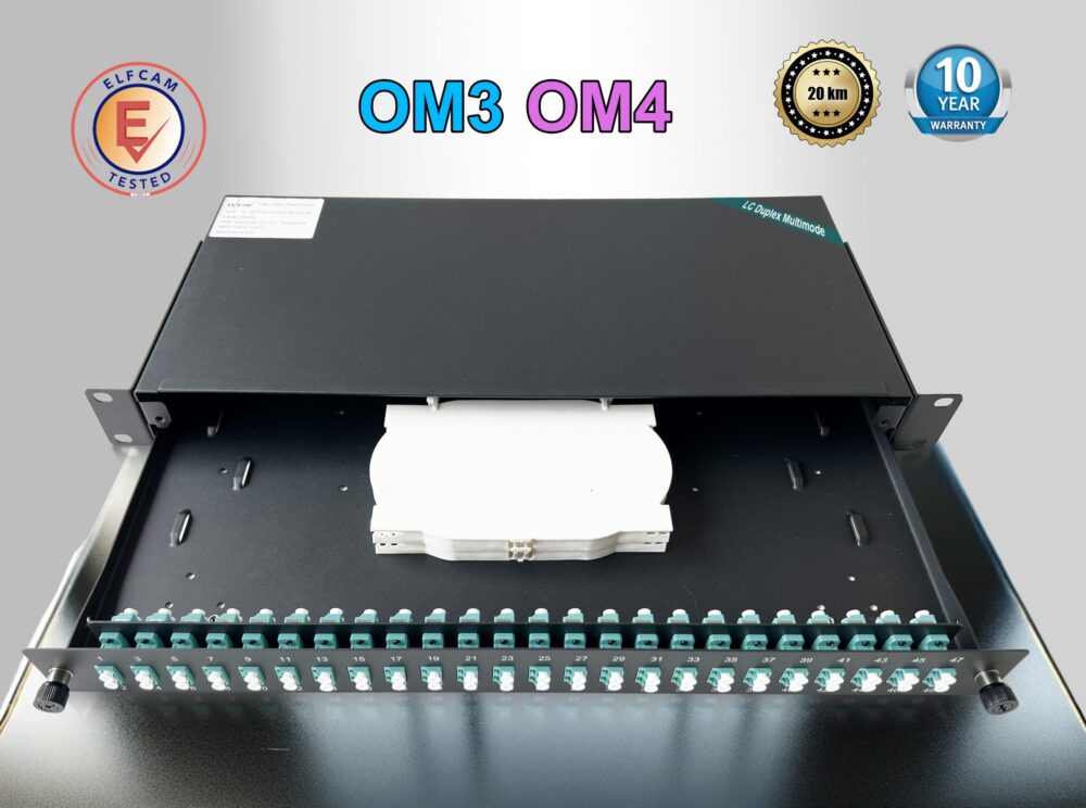 Elfcam® – Tiroir Optique 48 Ports LC/UPC Multimode OM3 OM4. Équipé de 48 Ports de LC/UPC Multimode, Installation dans Tous Les Racks et Baies 19 » du Marché (Ref: 22164)
