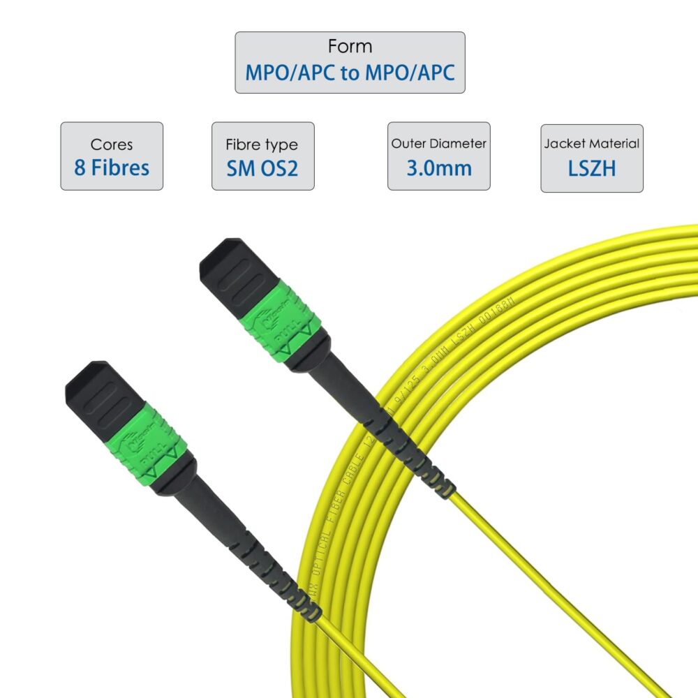 Elfcam – Câble Fibre Optique MPO/APC vers MPO/APC 16 Fibres Monomode OS2, compatible avec Nvidia/Mellanox/Arista/Cisco/HPE/Juniper/Marvell, Polarité de Type B, 8/16 Brins(Ref: 22726)