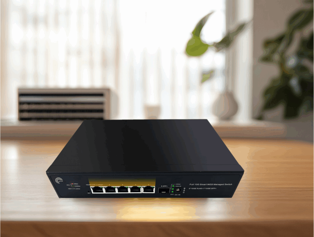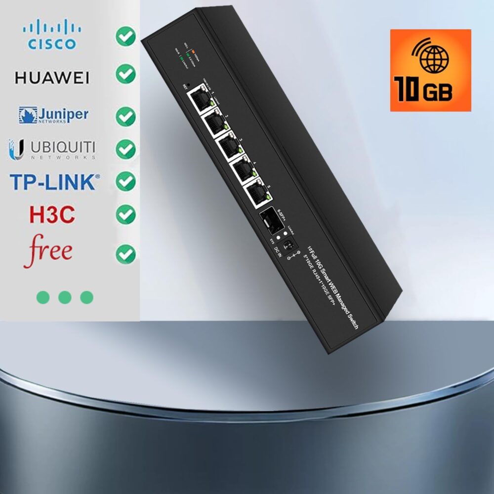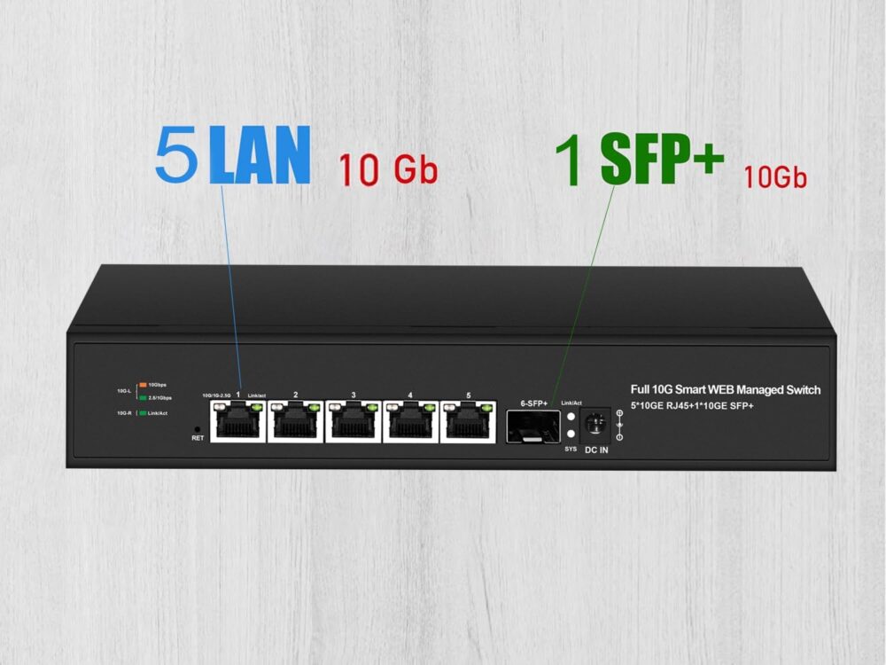 1 Port 10G SFP+ (fibre optique) + 5 Ports 10GbE RJ45 → pour une distribution multi-gig ultra rapide
