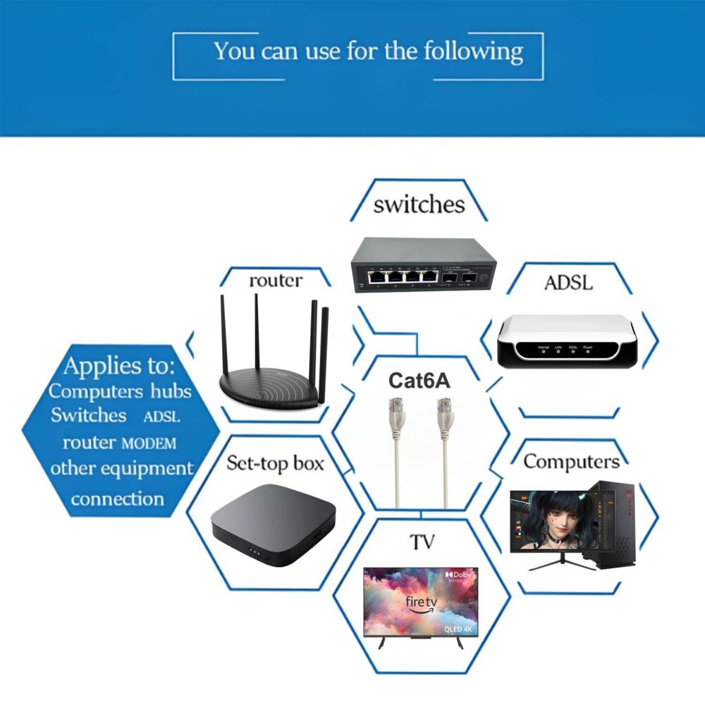 Ce câble Ethernet Cat 6A ultra fin associe hautes performances réseau et design compact, grâce à des conducteurs en cuivre pur nu 32 AWG. Avec un diamètre extérieur de seulement 2,8 mm, il offre une connectivité universelle pour les data centers, réseaux LAN et tous les équipements informatiques modernes : PC, serveurs, routeurs, switchs, NAS, imprimantes réseau, téléphones VoIP, lecteurs multimédias et dispositifs PoE. Sa finesse facilite le passage dans les espaces étroits tout en garantissant une transmission stable et fiable, même dans les environnements complexes.