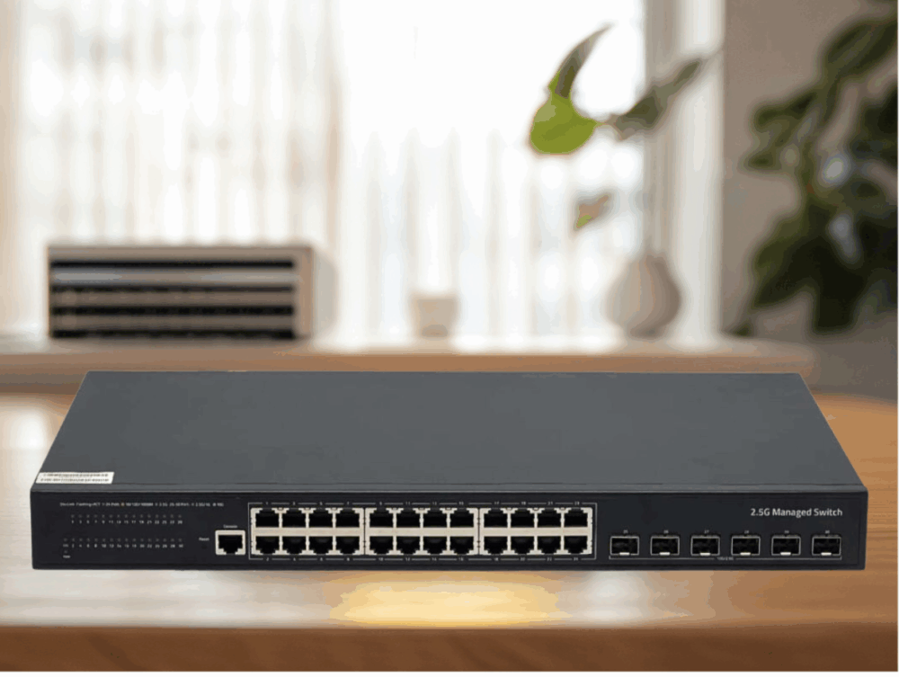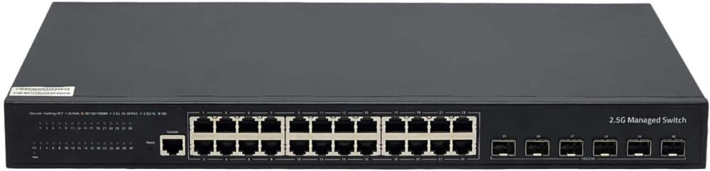 10Gb Commutateur Géré Switch Fibre Optique avec 6 Ports 10G SFP+ et 24 Ports 2,5G Ethernet RJ45, Prend en Charge Le Module SFP+ 10G/2.5G/1.25G, Compatible avec Freebox Ultra, Géré Switch Rallonge Votre 10G Réseau