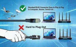 Câble Ethernet Cat 6 haute vitesse : Le câble réseau RJ45 Cat 6 standard intégré supporte des vitesses allant jusqu’à 1 Gbps, facile à débrancher et assurant une transmission rapide et stable pour vos connexions internet, routeurs ou ordinateurs.