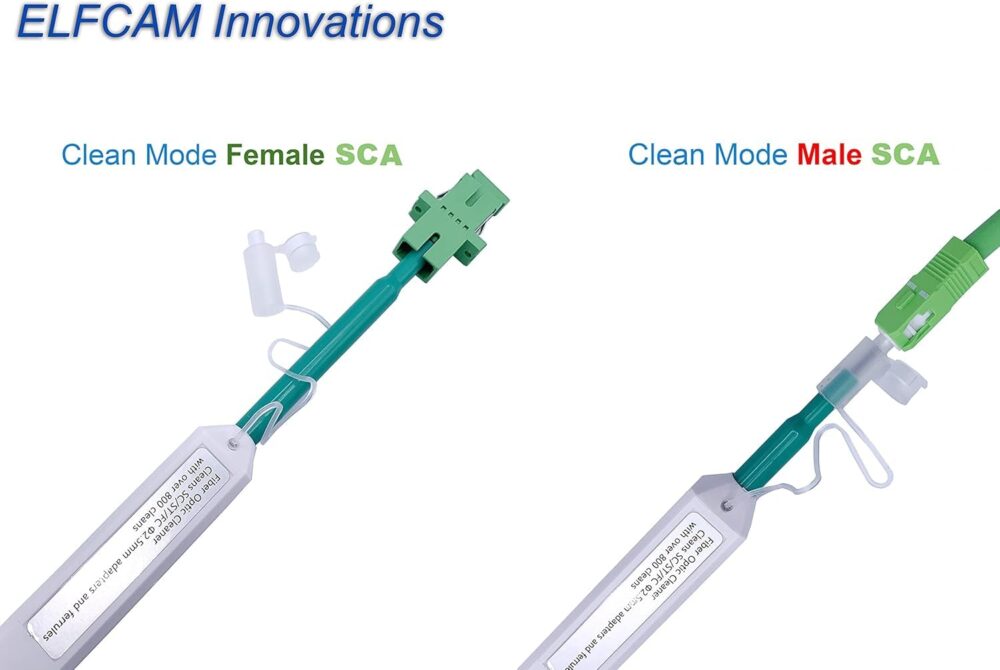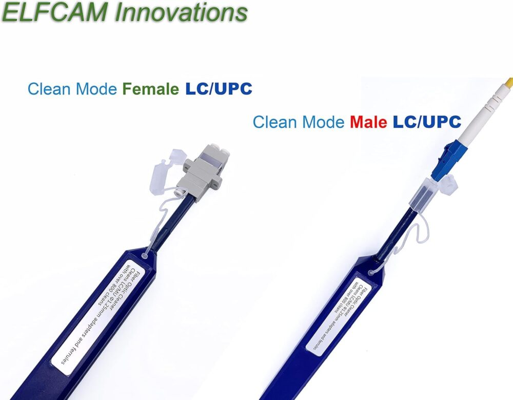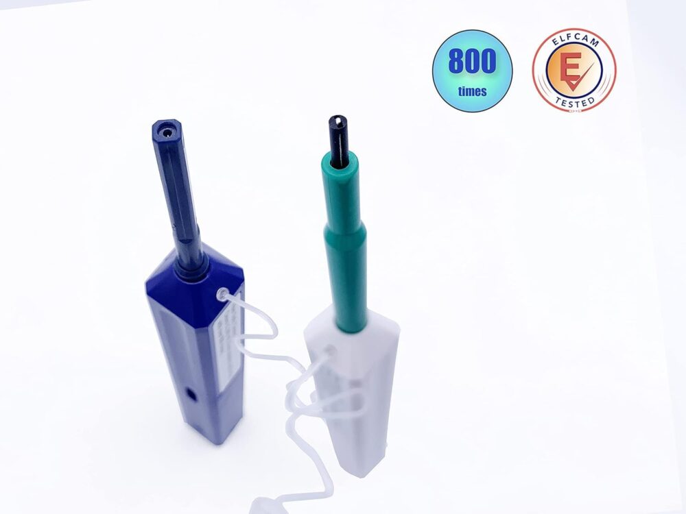 - Avec le stylo de nettoyage ELFCAM, vous pourrez supprimer la saleté de manière très efficace et rapidement des connecteurs fibre optique pour un bon fonctionnement de votre réseau fibre optique.