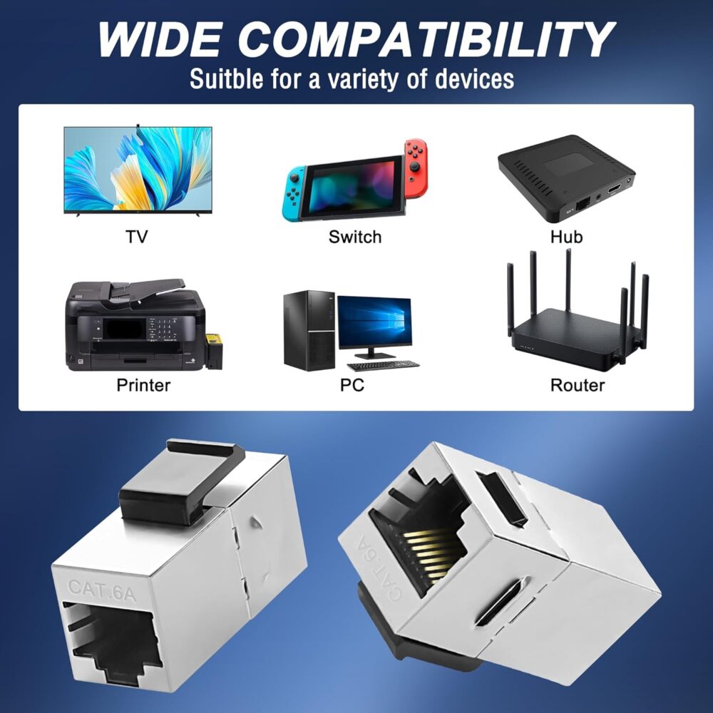 - Prolonger efficacement : le connecteur d’extension Ethernet coupleur RJ45 vous aide à connecter deux câbles réseau pour prolonger la longueur des câbles réseau existants sans affecter la vitesse du réseau. C’est un choix idéal lorsque le câble réseau n’est pas assez long.