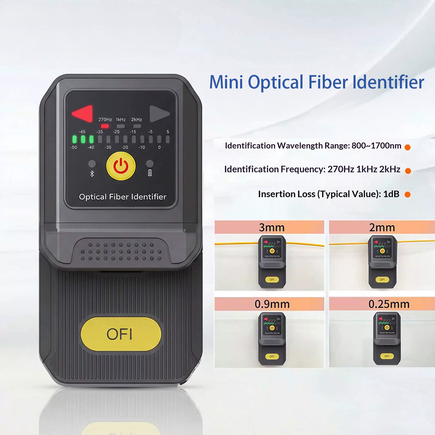 Batterie rechargeable et autonomie prolongée L’appareil intègre une batterie lithium de 500 mAh offrant jusqu’à 24 heures d’autonomie. Le port USB Type-C permet une recharge rapide et pratique, avec une protection intelligente contre les surcharges et les risques de surchauffe Compact et facile à transporter Avec un poids d’environ 90 g et une épaisseur de seulement 2,9 cm, cet outil est compact et facile à transporter dans une poche ou un sac d’outils. Le kit comprend :1 × identificateur de fibre optique,1 × boîte d’emballage,1 × sac de transport en tissu Oxford,1 × câble USB-C,1 × dragonne,Idéal pour les techniciens FTTH, installateurs fibre et ingénieurs réseau