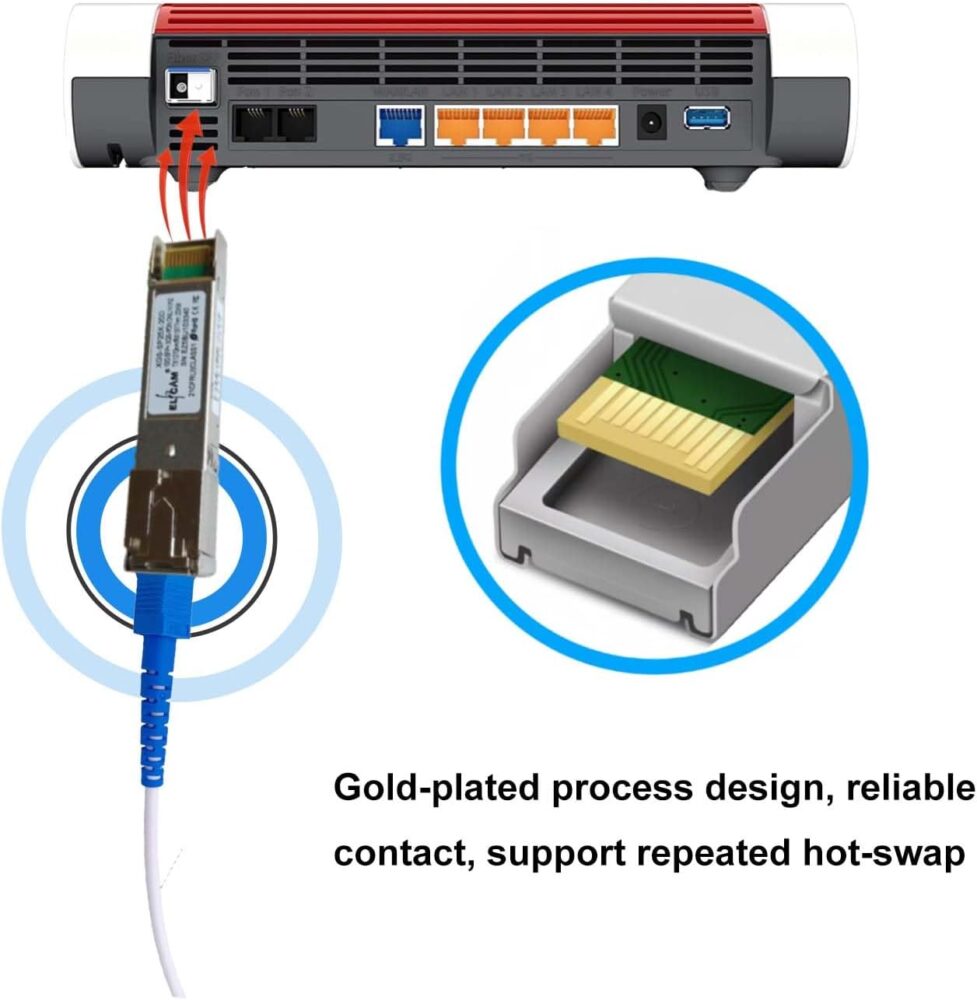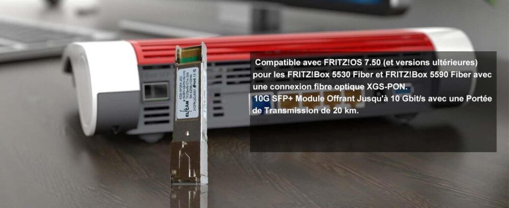 - 10G SFP+ Optique Module XGS-PON pour 10GbE ONU and Les FRITZ!Box 5530 Fiber et FRITZ!Box 5590 Fiber, Permettant d’atteindre une Vitesse Maximale Via la Fibre Optique.