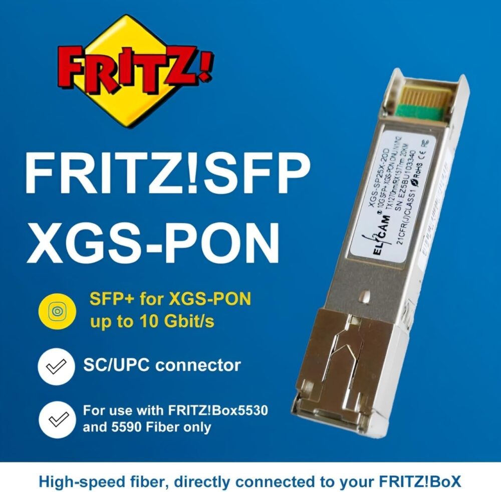 10G SFP+ Optique Module XGS-PON pour 10GbE ONU, Jusqu’à 10 Gbit/s , Compatible avec Les Fritz!Box 5530 Fiber et Fritz!Box 5590 Fiber