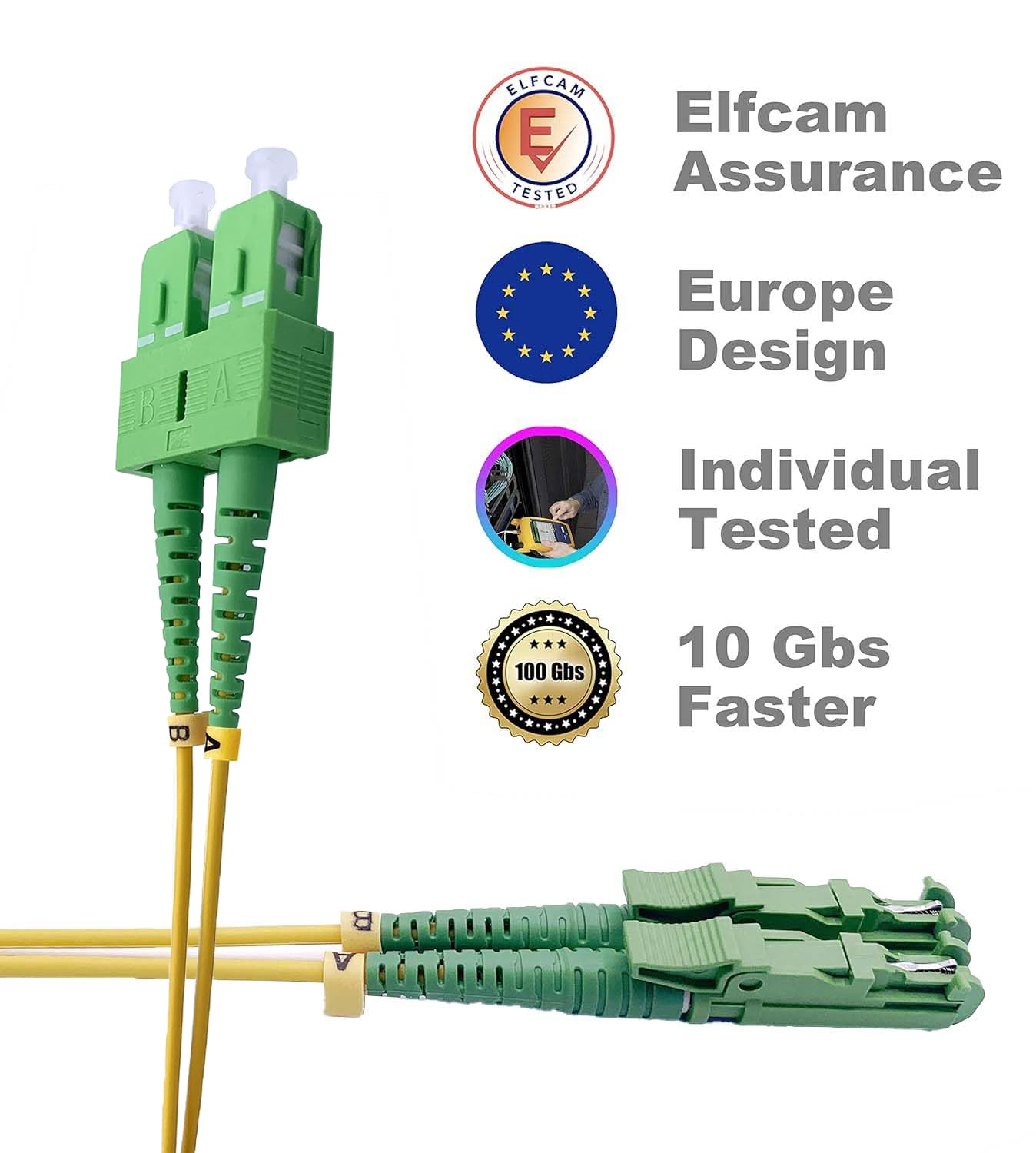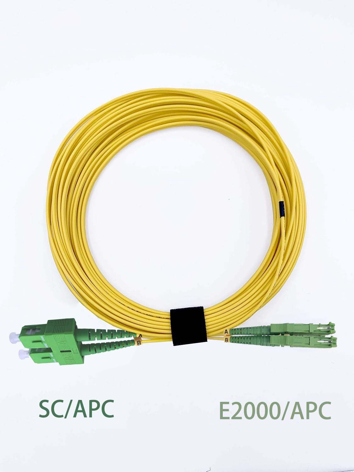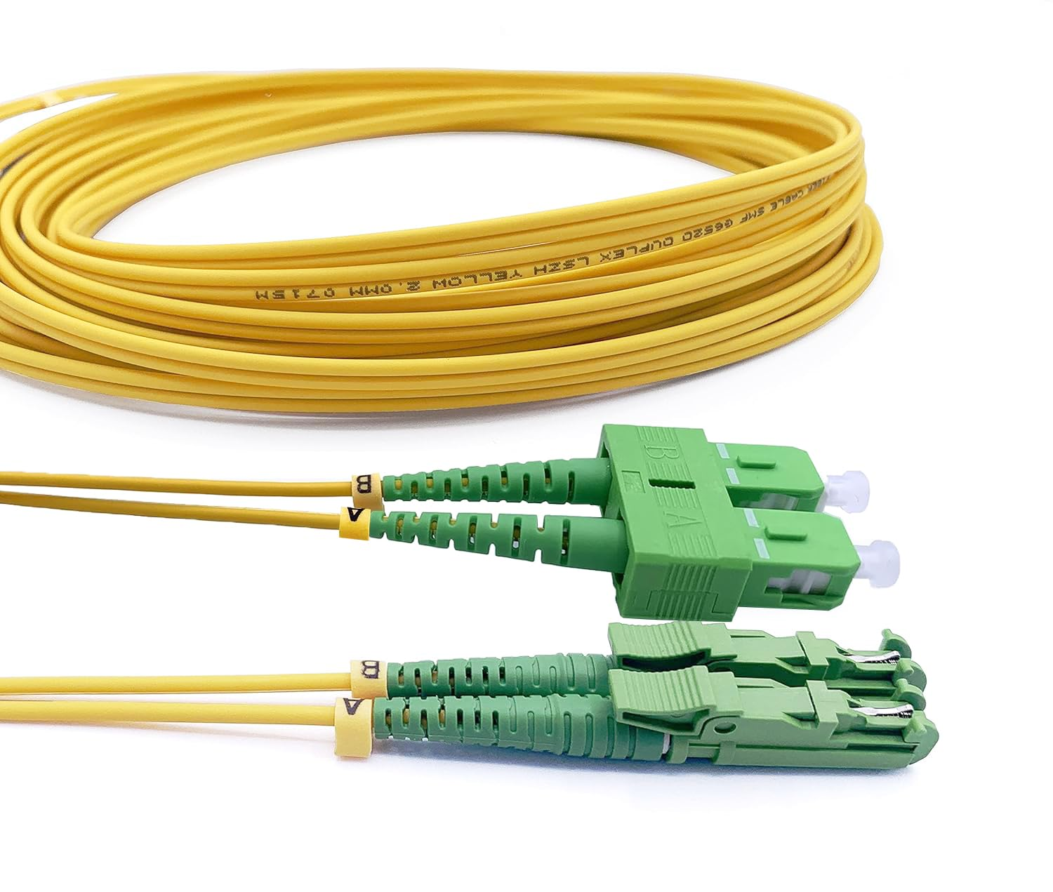 Elfcam – Câble à Fibre Optique E2000/APC à SC/APC,Monomode Duplex, Jarretière Optique 9/125μm OS2 2.0mm G652D LSZH, Jaune