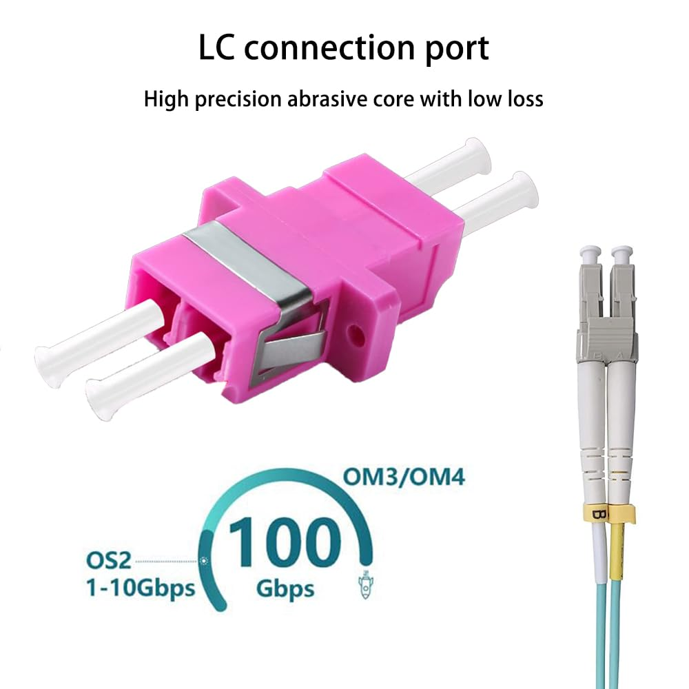 - OM4 L’adaptateur LC/UPC to LC/UPC pour fibre optique est testé individuellement et certifié pour être dans les limites acceptables de perte d’insertion optique pour une compatibilité garantie et une fiabilité à 100%. Test de perte d’insertion à 100 %, test de perte de retour, inspection de la face frontale et détection des interférences.