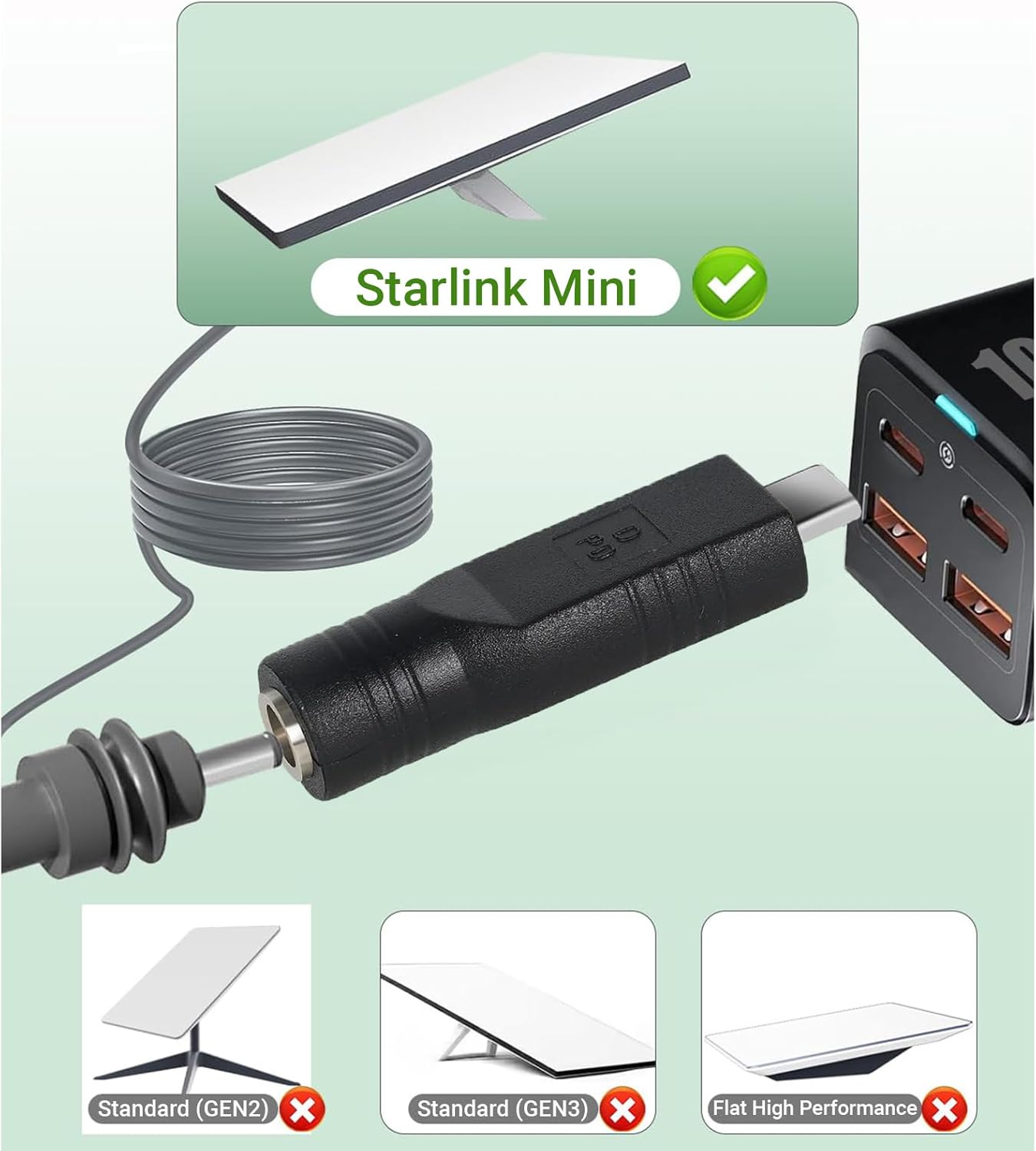 【Rechargez en toute simplicité】Cet adaptateur transforme l’interface DC du câble d’alimentation de votre Starlink Mini en interface USB-C. Chargez votre Starlink Mini à tout moment et n’importe où via un chargeur ou une batterie portable USB-C.