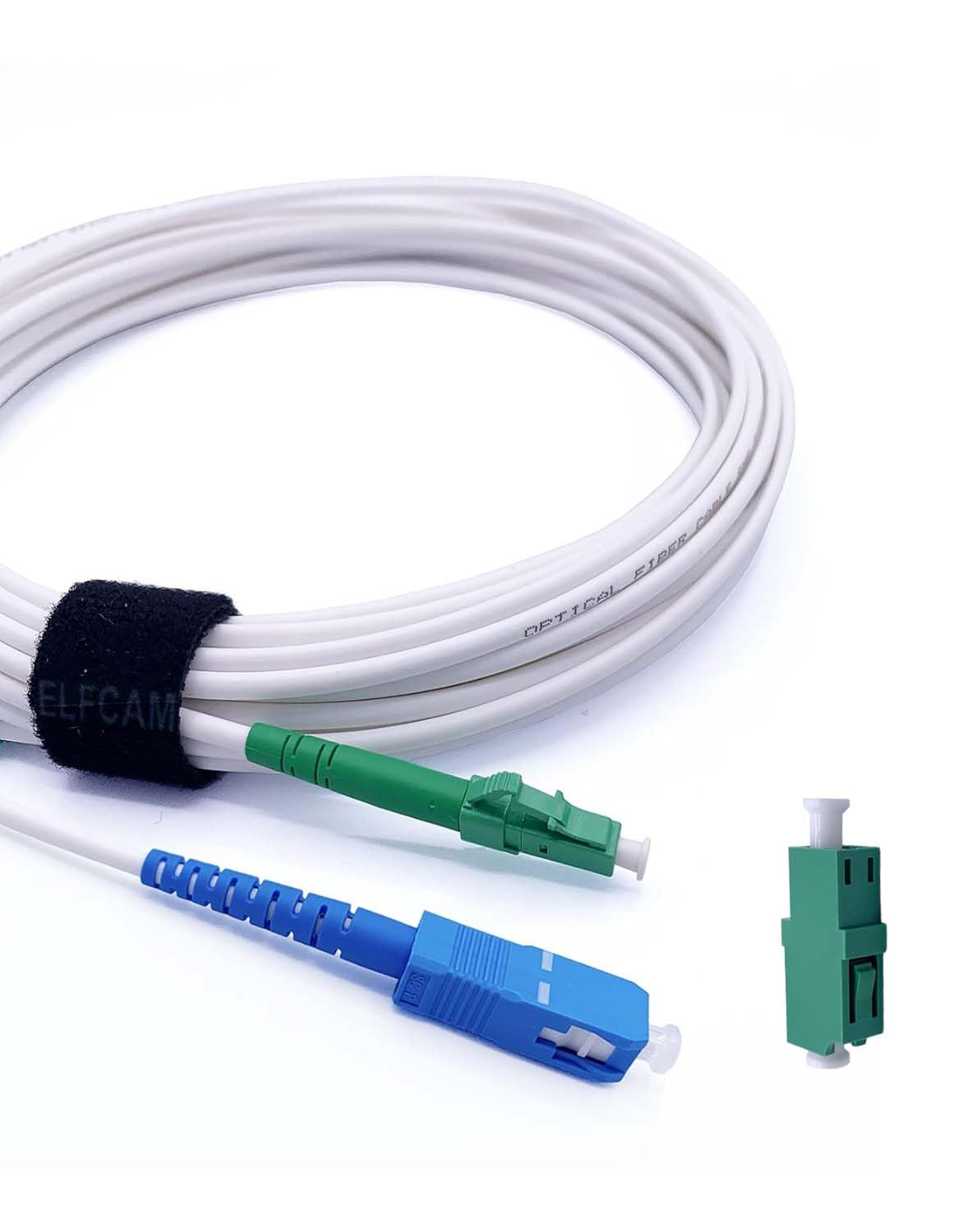 Elfcam – Câble à Fibre Optique LC/APC à SC/UPC Simplex Monomode 3,0mm Blanc, La Livraison avec Le Coupleur pour FRITZ!Box