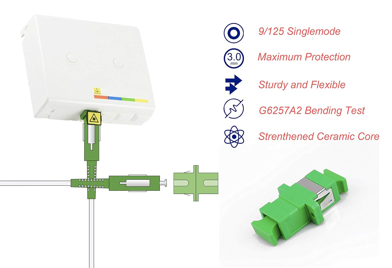 - Câble Fibre Optique Monomode SC-APC à SC-APC avec le coupleur pour rallonge fibre optique cable.