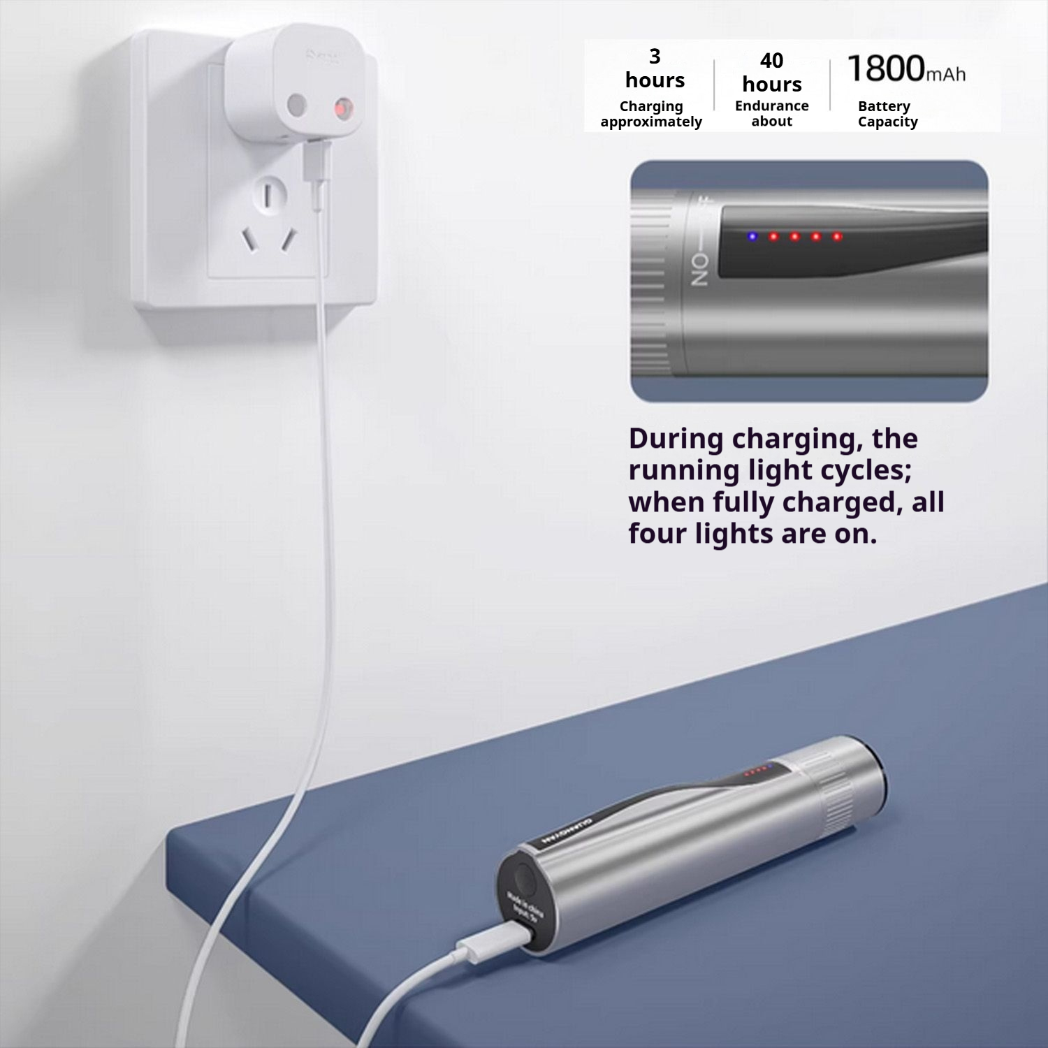 🔋 Autonomie exceptionnelle et recharge universelle : Alimenté par une batterie 18650 de 1800 mAh, il offre jusqu’à 40 heures d’utilisation continue selon le modèle. Recharge via USB (5 V / ≤600 mA) sur secteur, ordinateur, power bank ou adaptateur.