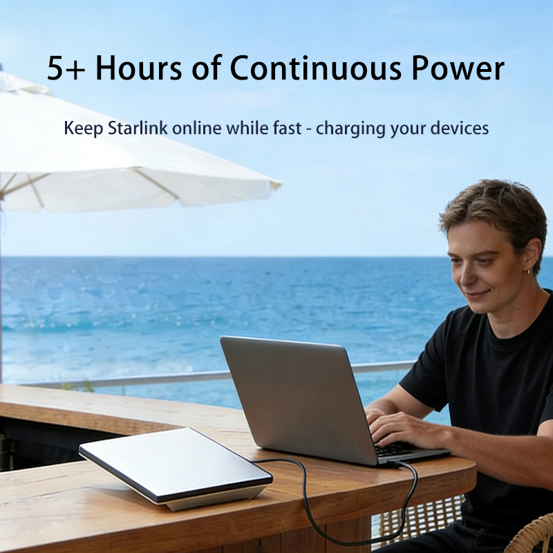 【Conception Sur Mesure pour Starlink Mini】 Spécialement conçue pour s’adapter parfaitement au Starlink Mini grâce à son système de fixation par clip. Installation rapide en quelques secondes pour une alimentation stable et sans encombrement lors de vos déplacements. 【Capacité idéale de 99,9 Wh】Cette batterie/power bank a une capacité de 27 000 mAh (99,9 Wh),IP65, ce qui peut alimenter votre appareil pendant 5 heures et répond aux restrictions strictes en matière de bagages à main de la plupart des compagnies aériennes, vous permettant de rester connecté partout dans le monde sans vous soucier des tracas administratifs 【Le panneau arrière offre une connectique complète】 1xPorts d’entrée : 1 port DC, jusqu’à 60W (26-32V/2A) 2xPorts de sortie : 1 port DC, jusqu’à 75W (20-25V/3A); 2 ports USB-C, jusqu’à 65 W (5V/3A, 9V/3A, 15V/3A, 20V/3,25A) ; compatibles avec les protocoles de charge rapide PD3.0 et QC4.0, ils permettent de recharger simultanément des appareils mobiles tels que téléphones, tablettes et ordinateurs. 【Design Multifonctionnel 3-en-1】 Comprend un cadre de support réglable pour optimiser l’angle de votre Starlink, ainsi qu’un trou fileté standard de 1/4 de pouce pour un montage facile sur trépied, idéal pour les terrains accidentés. 【Indicateurs LED et Sécurité】 Suivez l’état de l’énergie en temps réel grâce aux 4 indicateurs LED de batterie. Conçue avec des protections avancées contre la surchauffe et les surcharges, elle fonctionne de -10°C à 45°C pour une fiabilité en conditions extrêmes.