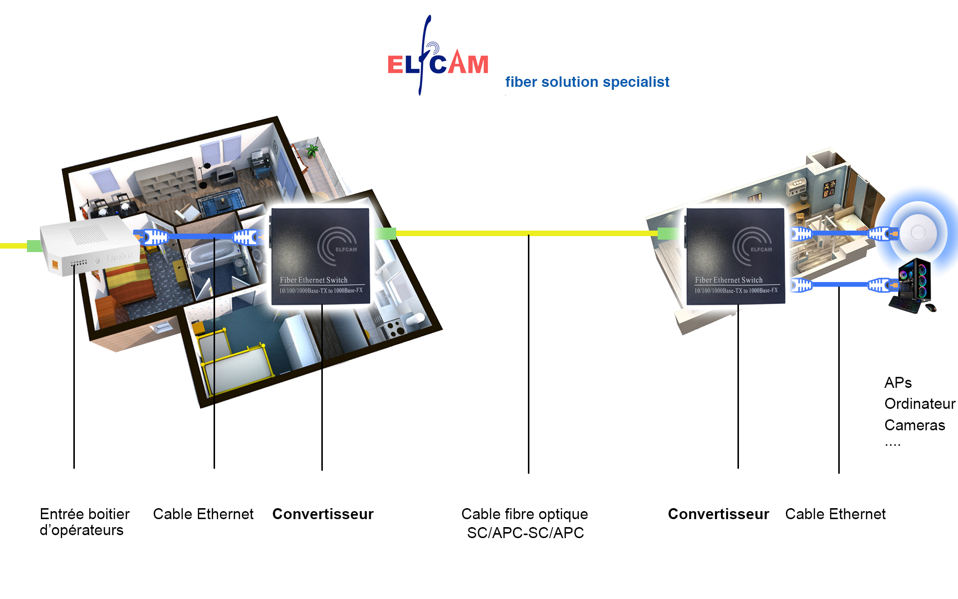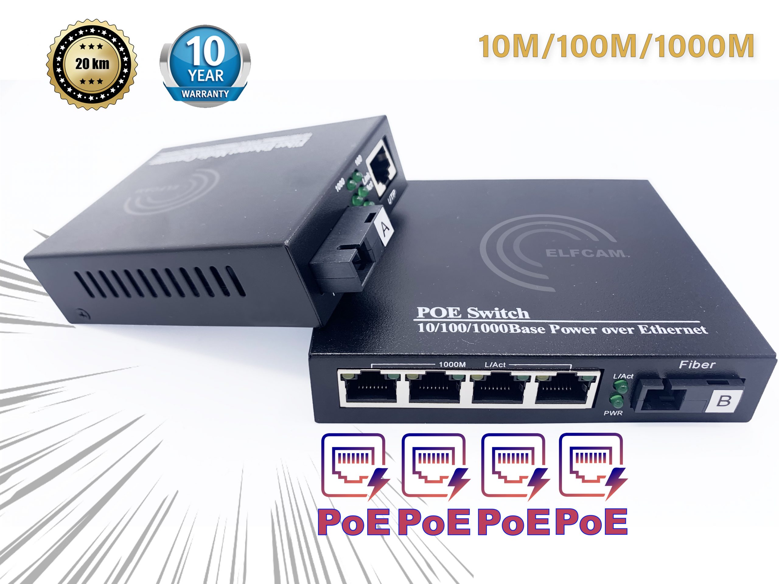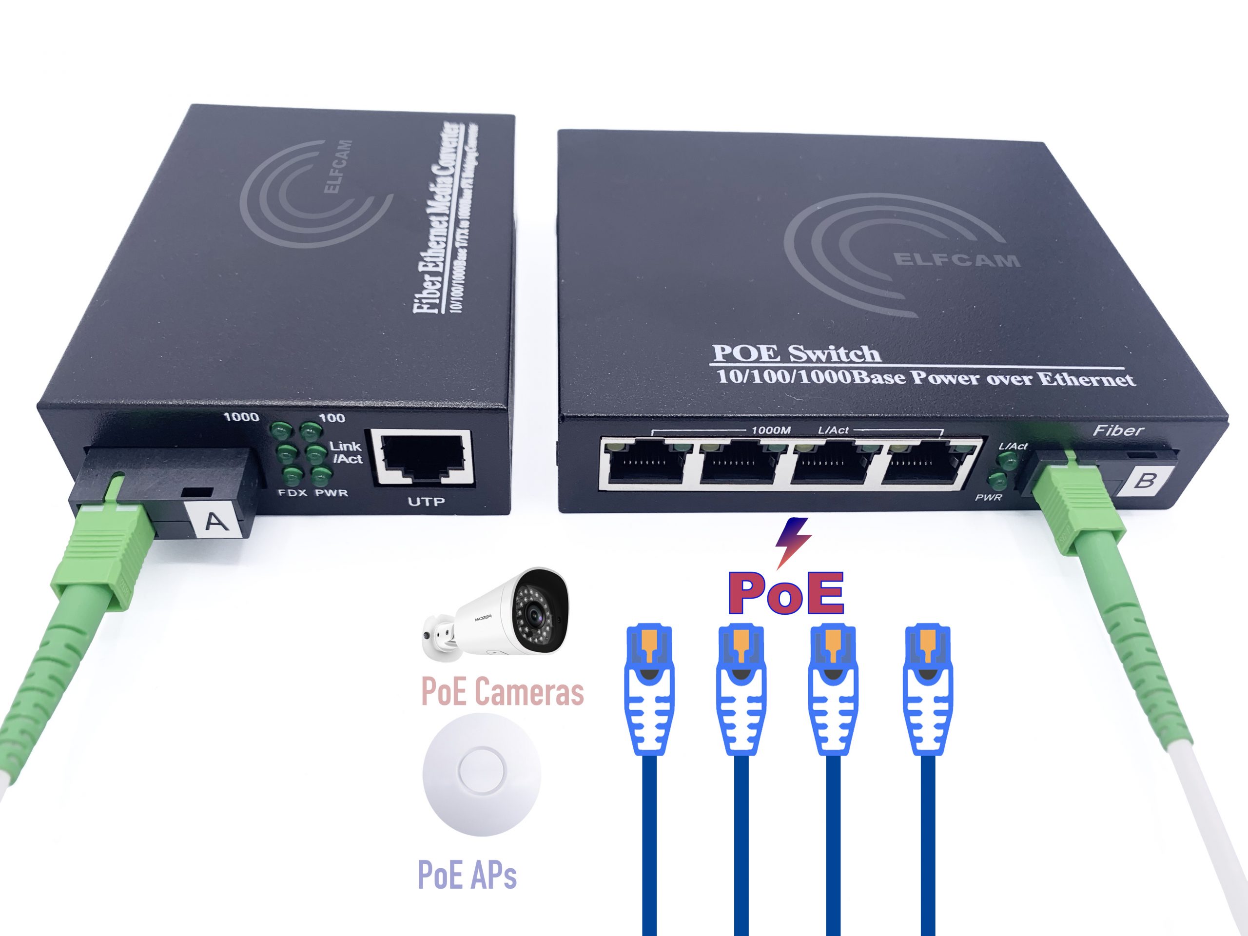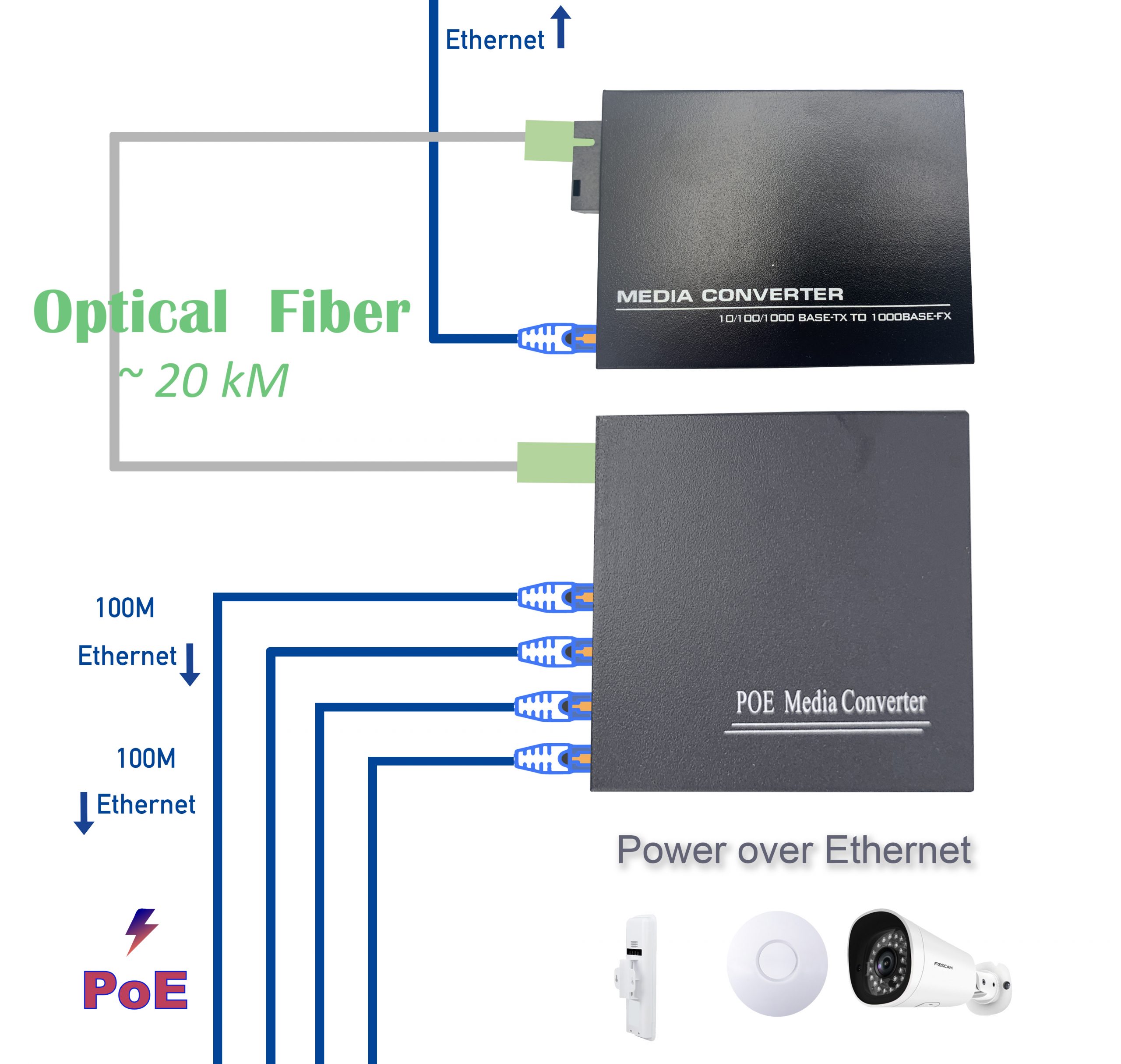 2 * Convertisseur de fibre (1 PoE, 1 non-PoE)