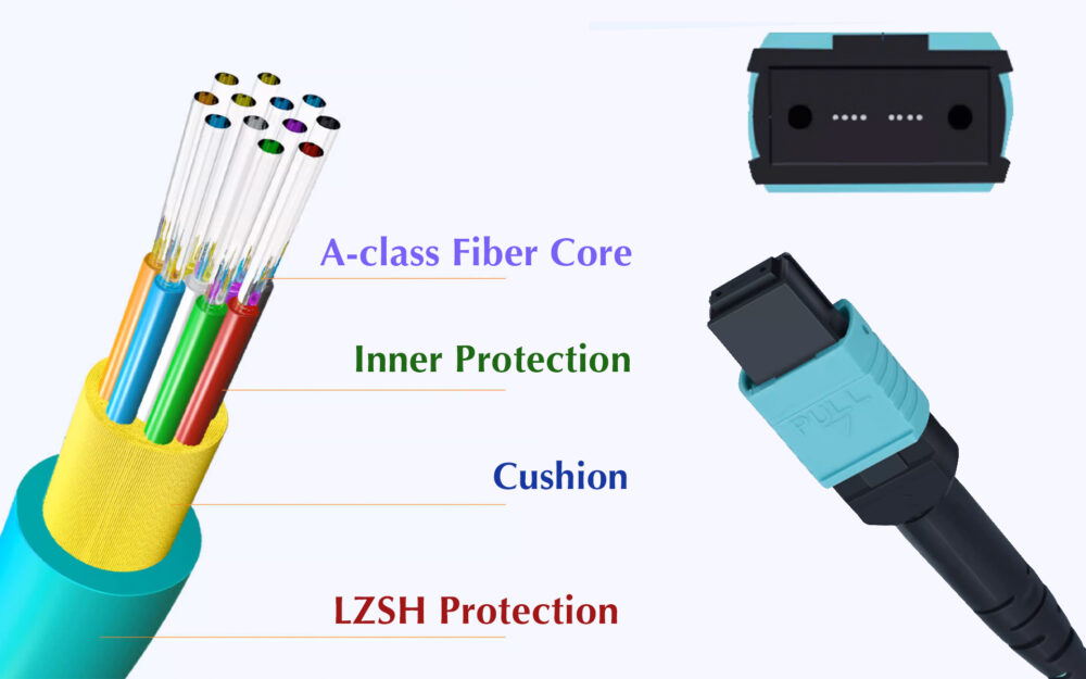 Optimisé pour les connexions directes 40G QSFP+ SR4/CSR4 et 100G QSFP28 SR4, ce câble MPO est la solution idéale pour les centres de données nécessitant une gestion de câbles à haute densité. Avec sa gaine LSZH (Low Smoke Zero Halogen), il assure également une sécurité accrue contre les incendies, ce qui en fait un choix fiable pour les environnements exigeants.
