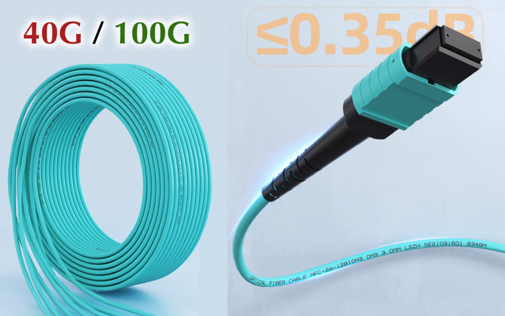 Câbe Fibre Optique MPO Femelle à MPO Femelle – 12 Fibres Multimode OM3 pour Centres de Données