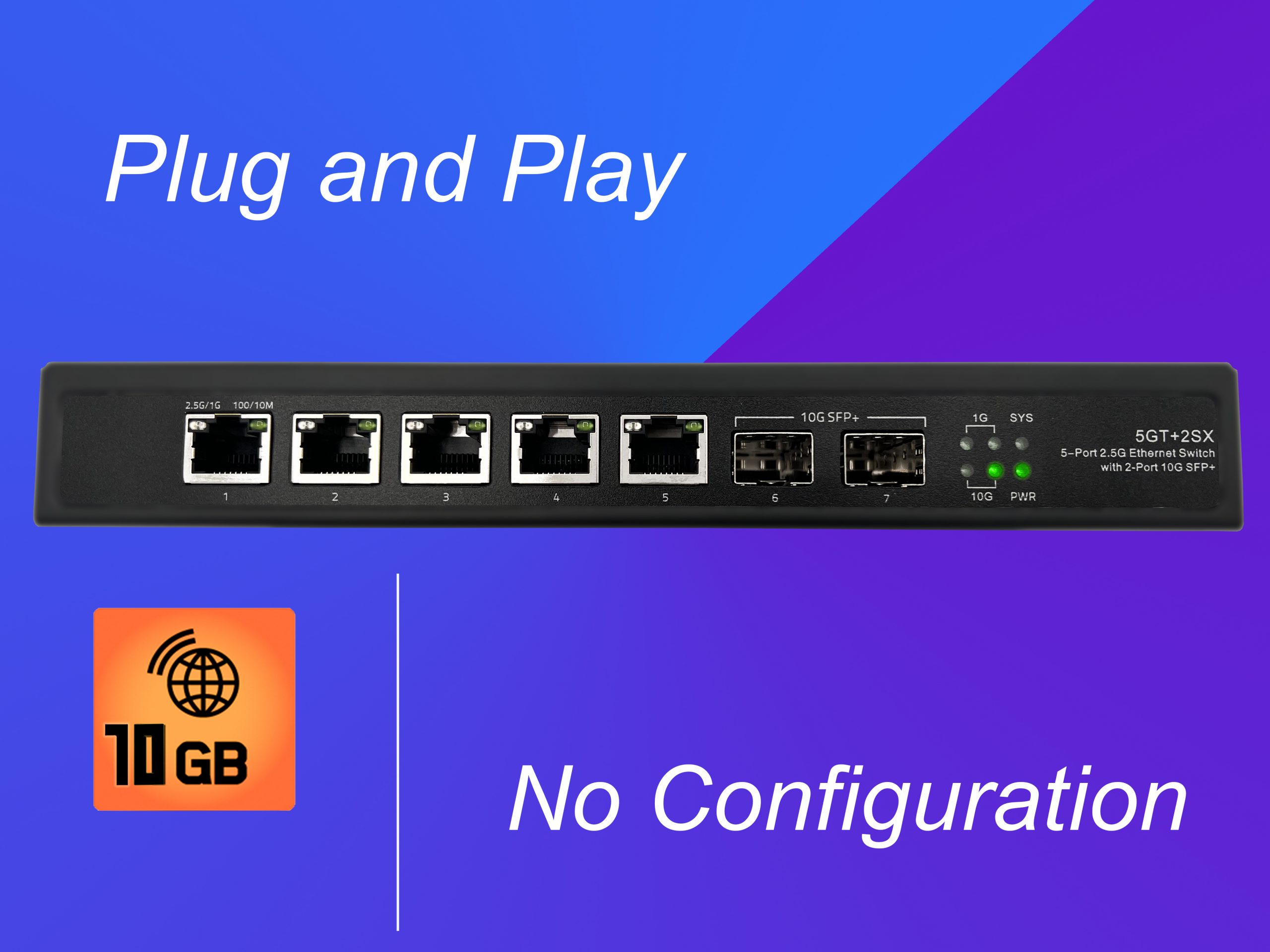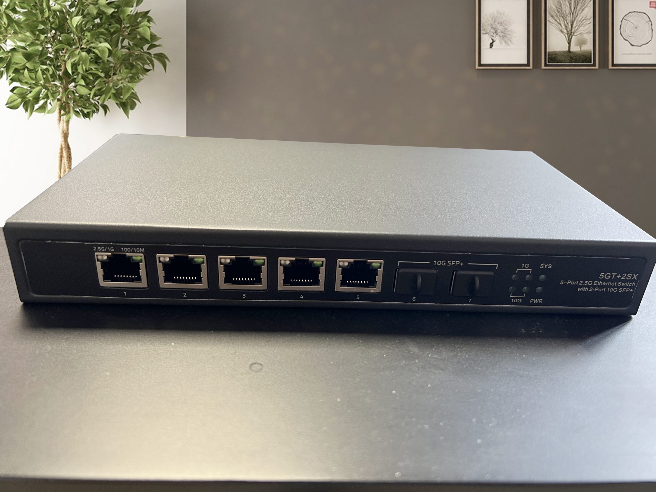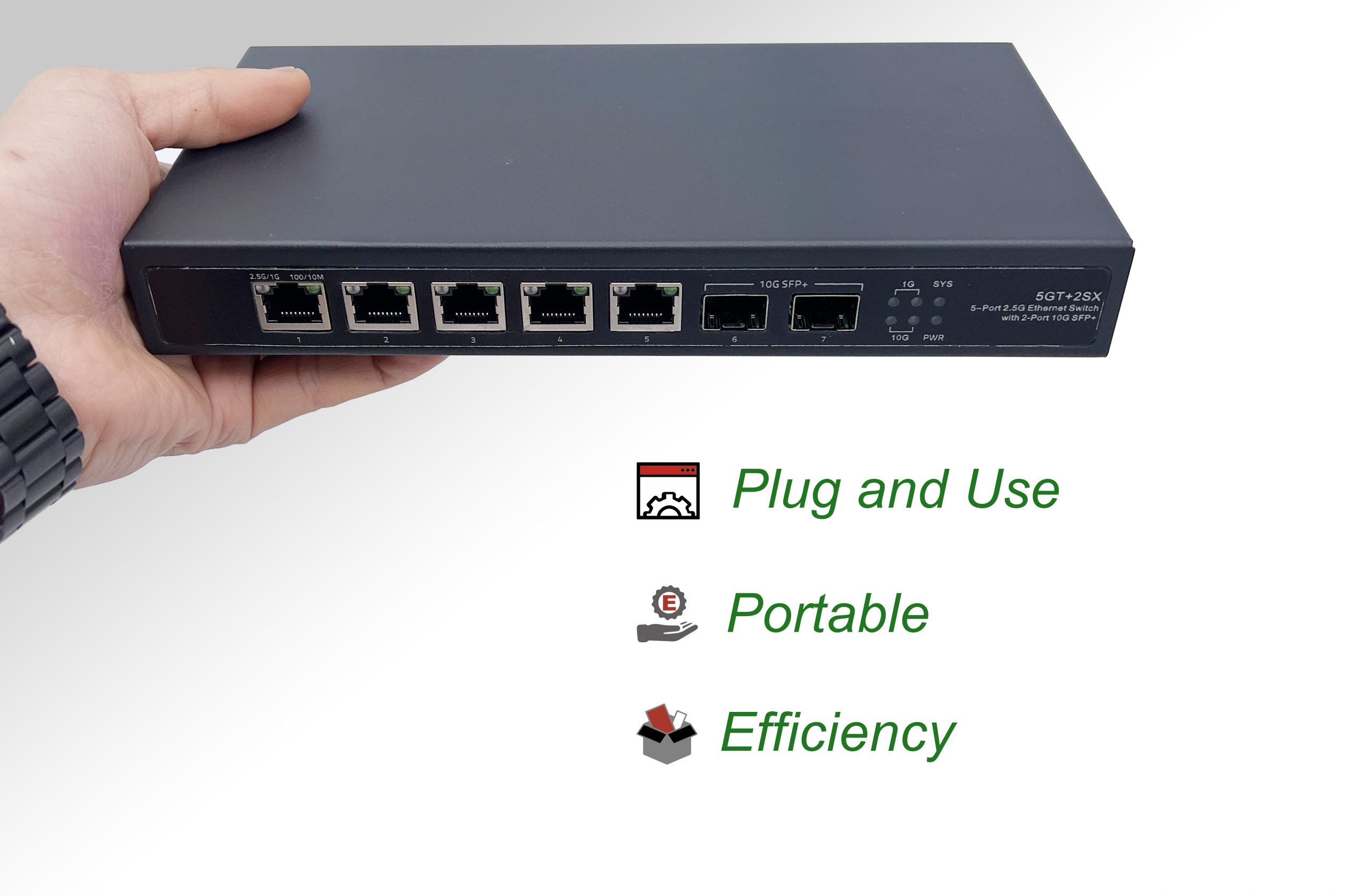 Ce commutateur Ethernet Gigabit est équipé de 2 ports 10GSFP+ et 5 ports Ethernet, supportant des vitesses allant jusqu’à 10/100/1000/2500/10000 Mbps. Il est idéal pour les réseaux nécessitant des transferts de données à haute vitesse et une grande bande passante.